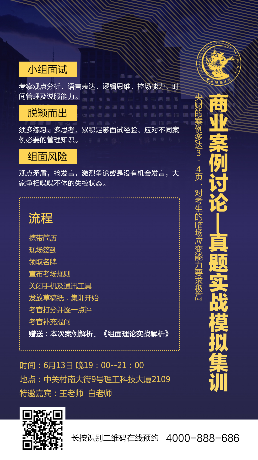 6月13日央財(cái)MBA提前面試組面——真題實(shí)戰(zhàn)模擬集訓(xùn)