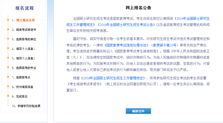 點擊上圖紅字的“2016年統(tǒng)考網(wǎng)報今天開始”可直接進入報名頁面