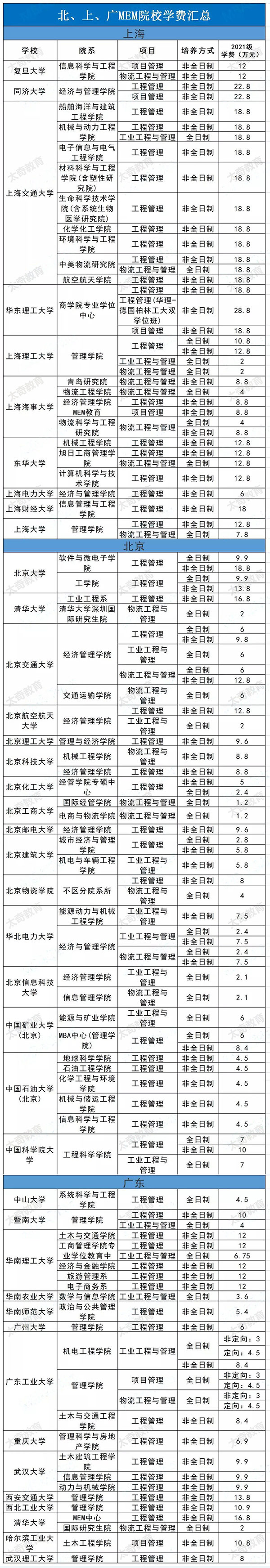 最近收到很多同學(xué)的私信,詢問MEM學(xué)費(fèi)的問題,下面太奇為大家整理了新的學(xué)費(fèi)匯總,感興趣的朋友可以瀏覽一下