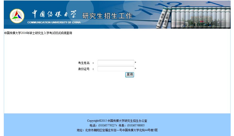 一、2016年中國傳媒大學(xué)碩士研究生入學(xué)考試初試成績查詢系統(tǒng)已開通