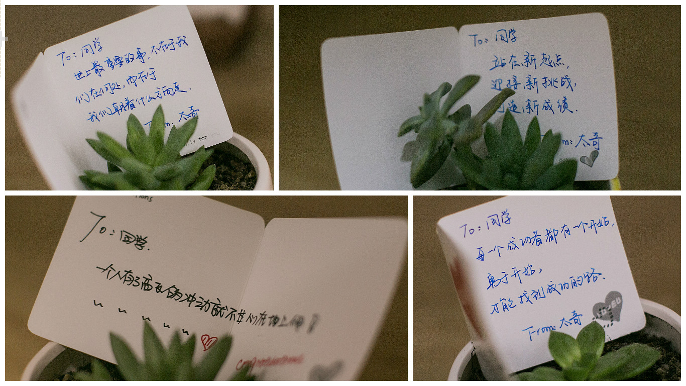 細(xì)心的同學(xué)們可能看到還沒有搬進(jìn)學(xué)員的空宿舍里桌子上都擺著一盆小多肉,這其實(shí)是我們隨“床”贈送的小禮物,走近看更是有手寫卡片放在上面,滿滿的期望和愛意,太奇人小到細(xì)節(jié)的關(guān)心著學(xué)員的學(xué)習(xí)和生活。