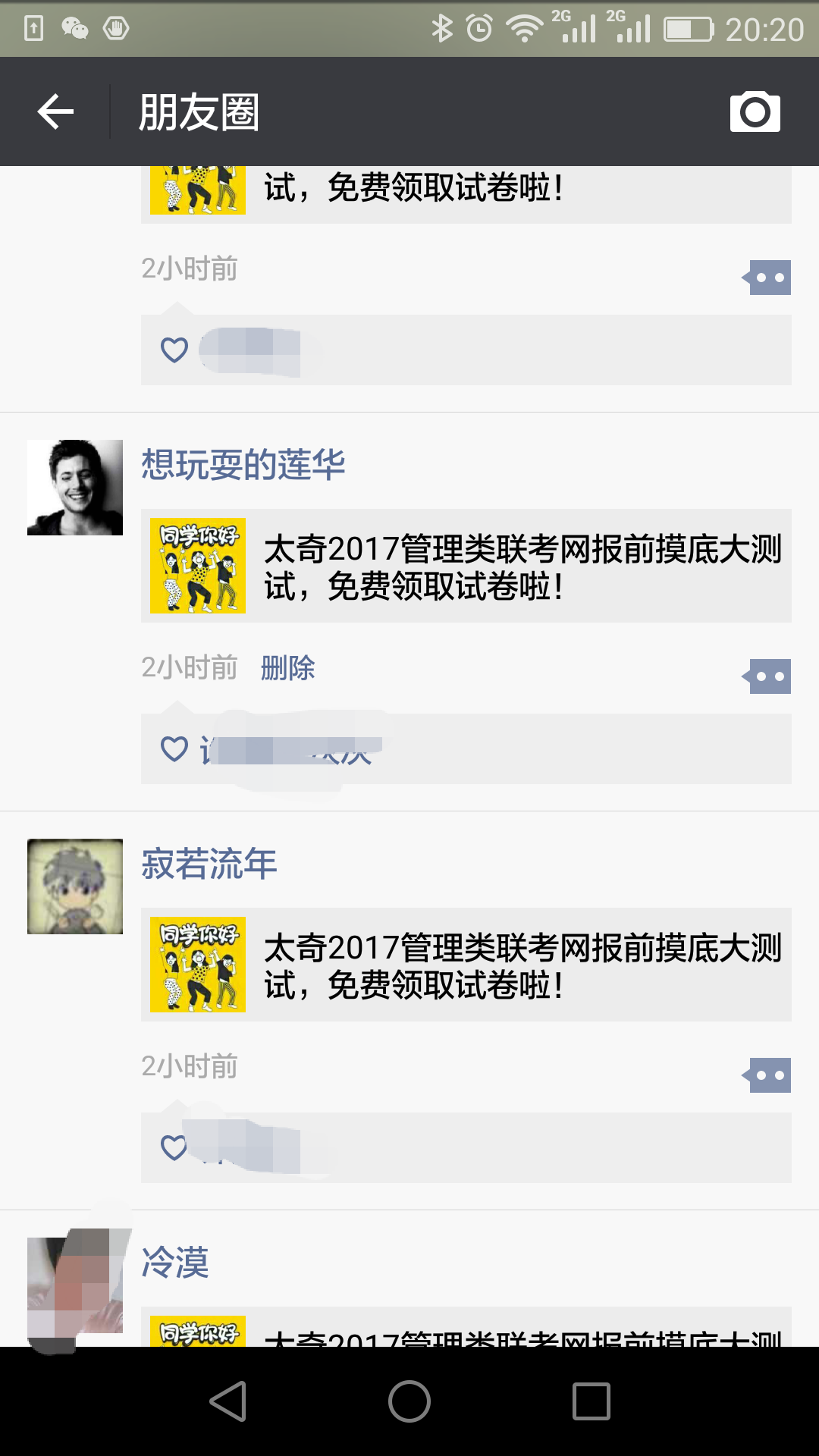 我也思考了很多關于一輩子的長度,從我們落生,上學,工作,我們經歷了那么多,一輩子的進度條僅僅過了不到三分之一,還有多少事要做,還有多少人要相處。其實像文中那位母親一樣過精致的生活并不難,難在對于自己生活價值的定位如何。精致的生活也并不昂貴,有時也需要一些努力,我也因為認識了一些生活精致對自己負責的人選擇了繼續(xù)深造管理類聯考這條道路,在我看來我的生活應該是經過努力后的充實,不管是物質的追求還是精神的追求我都要達到,鎖定了這樣的目標,為了這種生活的精致,像那個母親一樣,離婚或者離職并不是難以抉擇的事情?! ≡谖遗笥讶Ρ贿@篇文章刷屏的同時,我更多被我的同學刷屏了一條信息,我覺得應該是為自己生活負責的時候了,經過了一年的復習備考,本來成績平平的我馬上也要和很多成績卓越的人進行同堂競爭,我要通過摸底??即鬁y試檢驗一下自己的實力,究竟能在管理類聯考的排行榜上取得怎樣的名次。