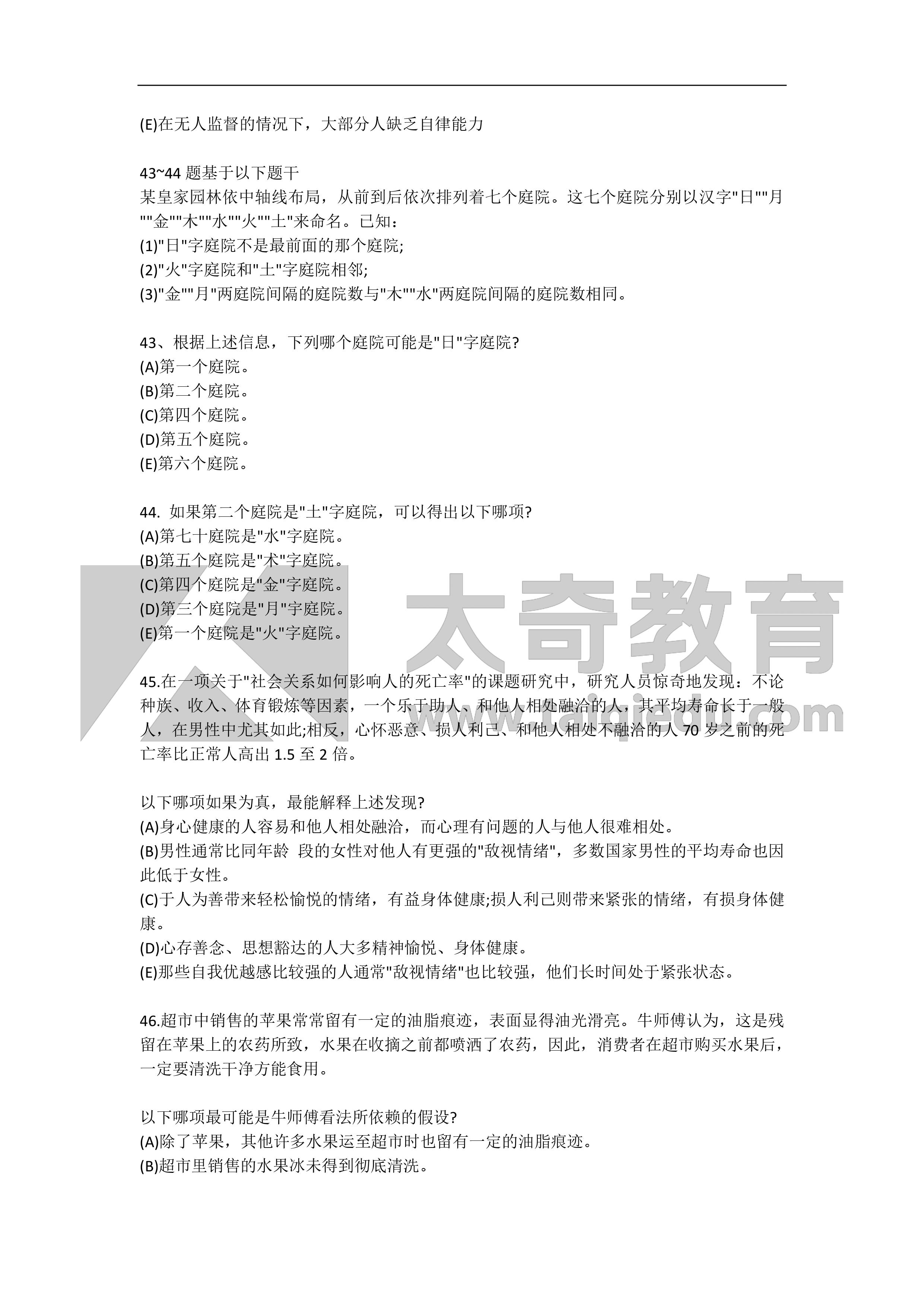 2016MBA管理類聯(lián)考邏輯真題(6)