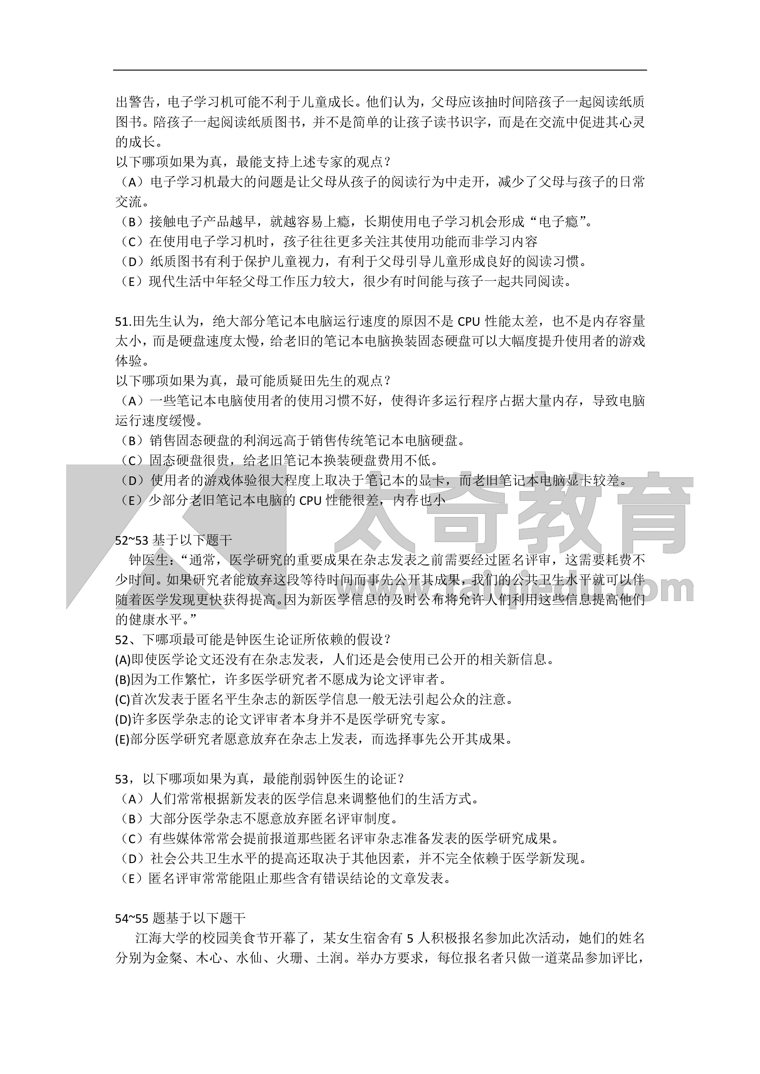 2016MBA管理類(lèi)聯(lián)考邏輯真題(8)