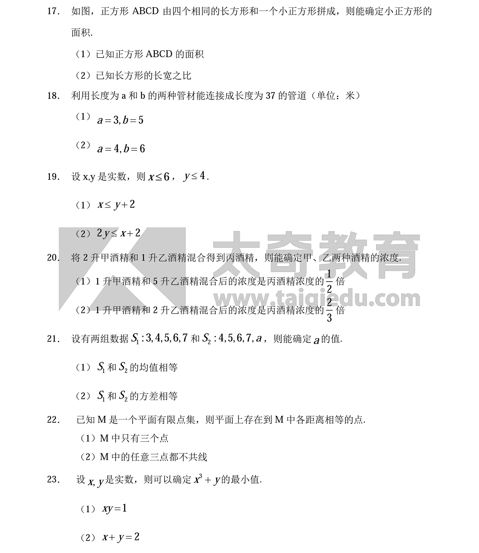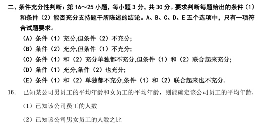 2016MBA管理類聯(lián)考數(shù)學真題:條件充分性判斷