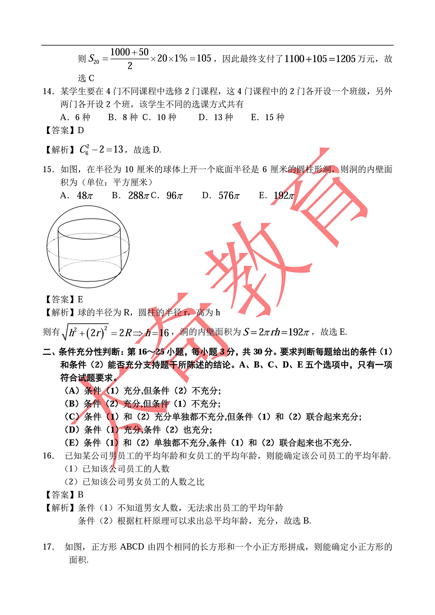 2016管理類聯(lián)考數(shù)學(xué)真題完整解析(太奇官方版)(5)