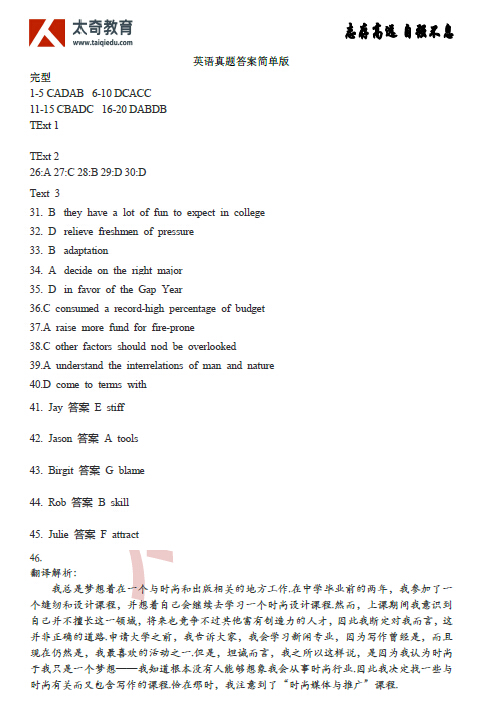 2017年MBA管理類聯(lián)考英語(yǔ)(二)真題答案