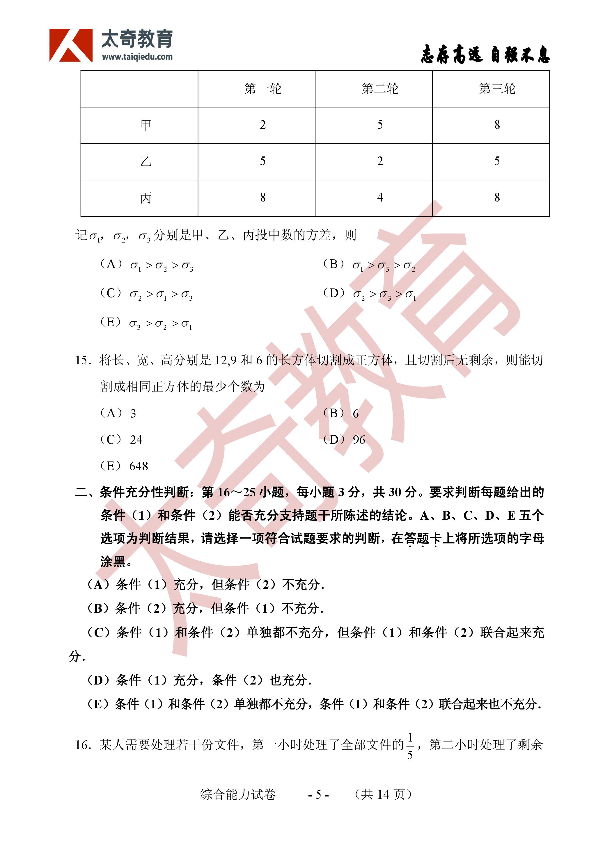2017年MBA聯(lián)考數(shù)學(xué)真題參考答案:條件判斷