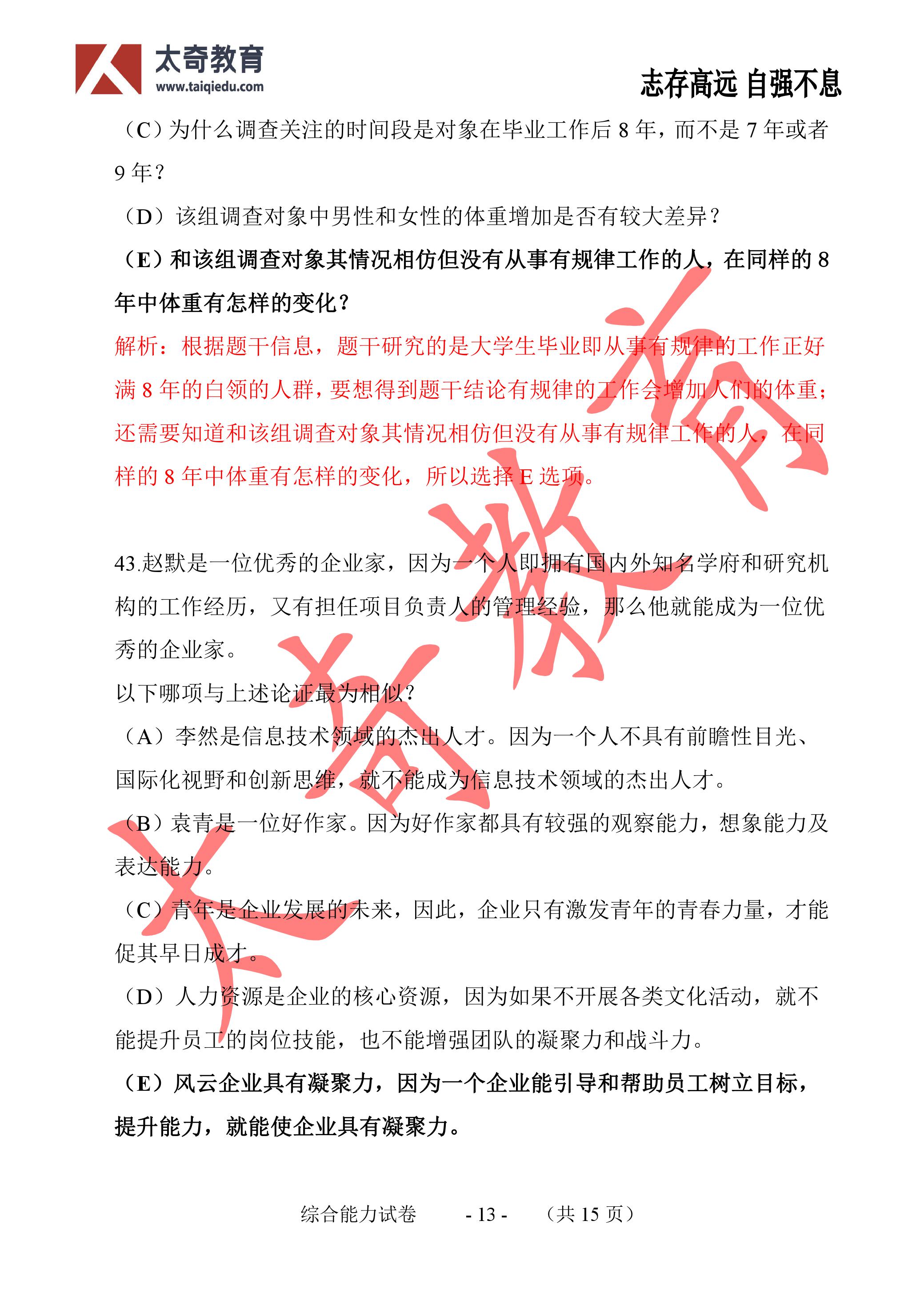 2017年MBA管理類聯(lián)考邏輯真題參考答案