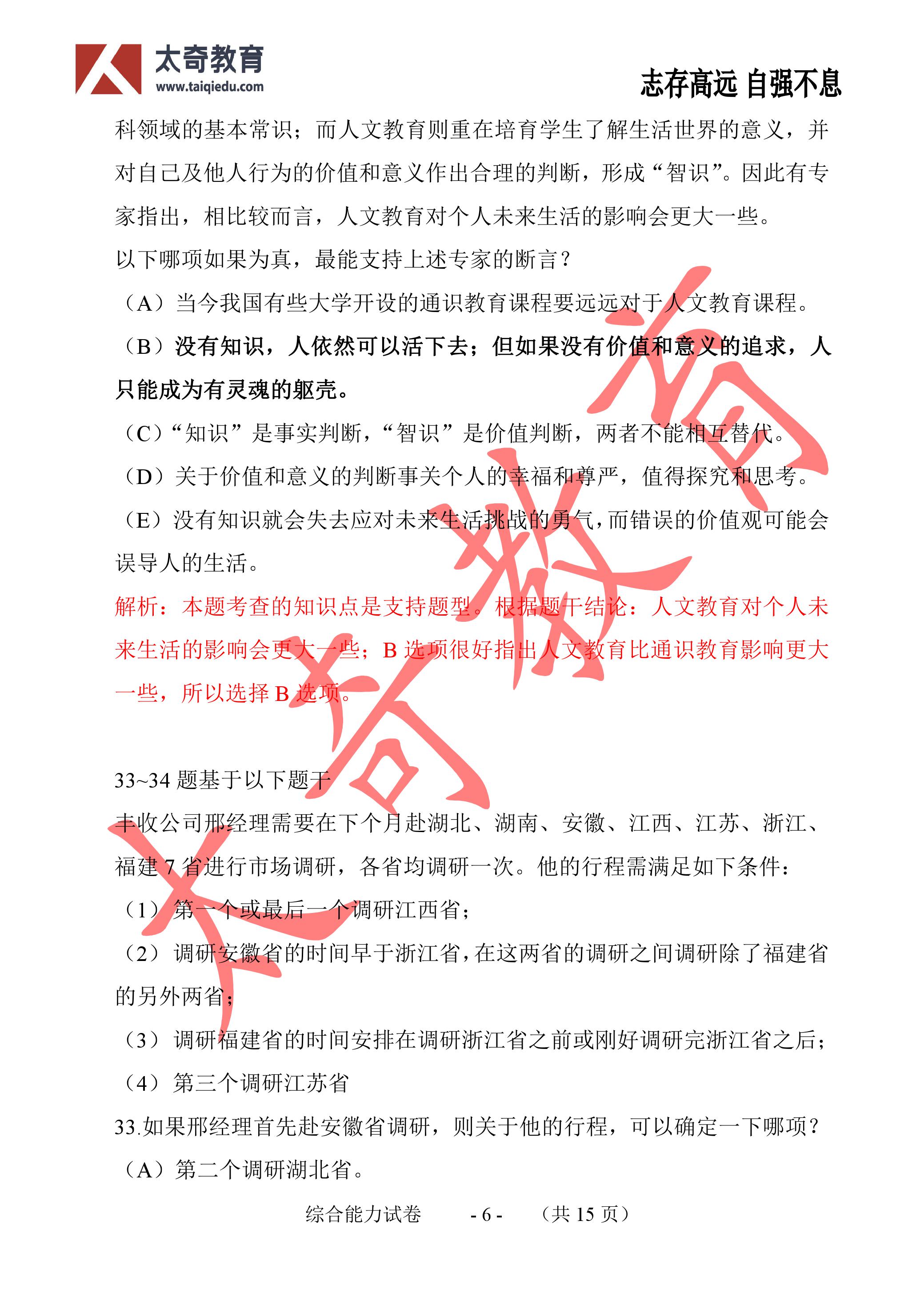 2017年MBA管理類聯(lián)考邏輯真題參考答案