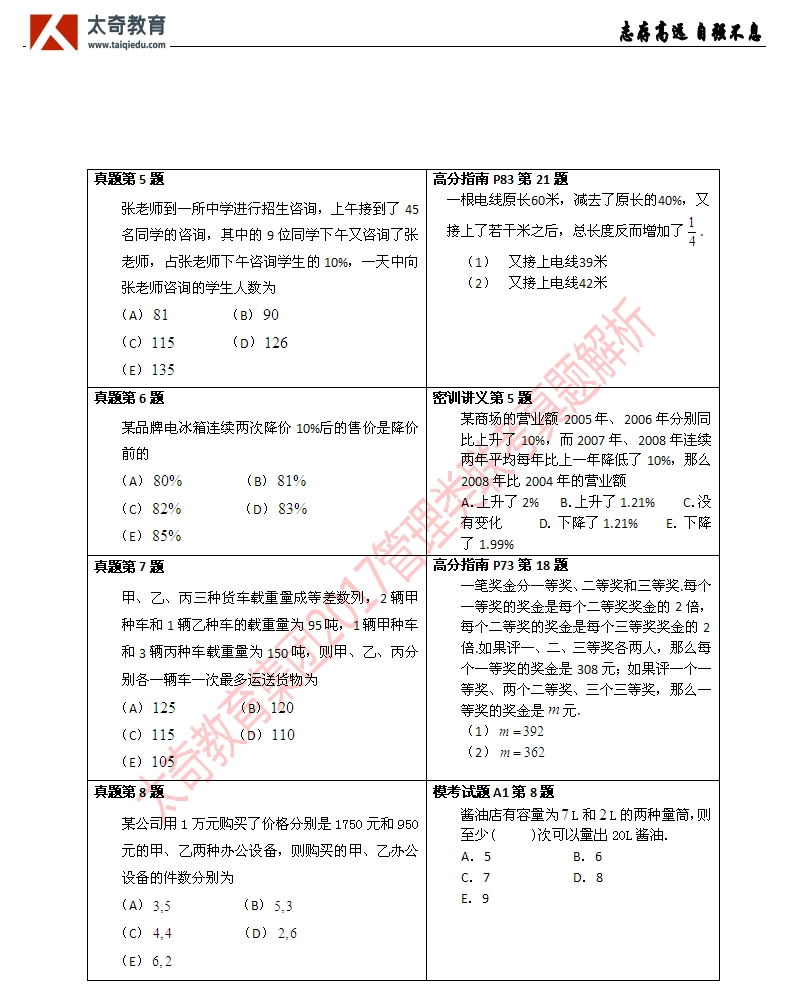 祝賀太奇教育2017管理類聯(lián)考數(shù)學(xué)直接命中66分(2)