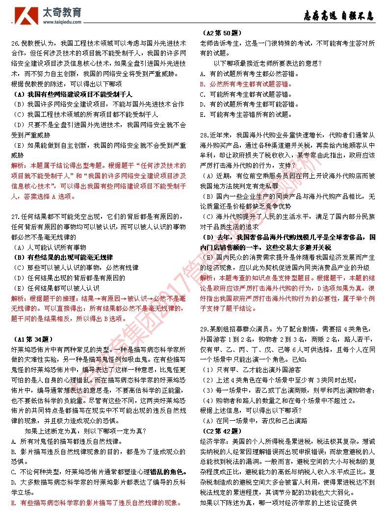 祝賀太奇教育2017管理類(lèi)聯(lián)考邏輯直接命中46分