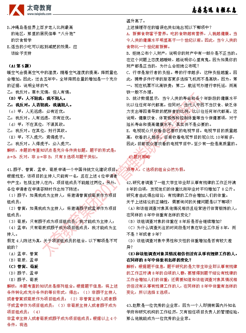 祝賀太奇教育2017管理類聯(lián)考邏輯直接命中46分(5)