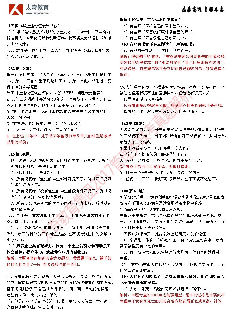 祝賀太奇教育2017管理類聯(lián)考邏輯直接命中46分(6)
