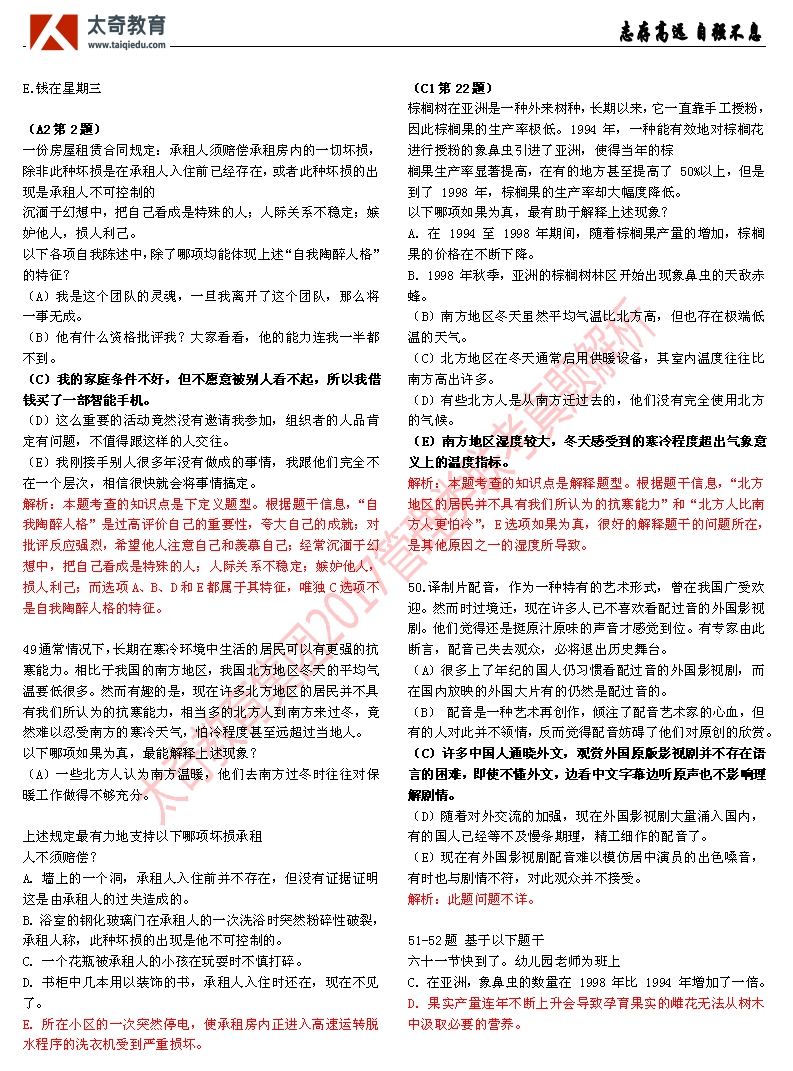 祝賀太奇教育2017管理類聯(lián)考邏輯直接命中46分(8)
