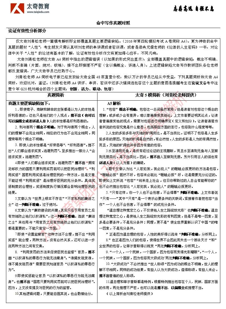 在2017年MBA管理類聯(lián)考中,綜合寫作考試部分全部命中,比命中考題更為重要的是:太奇在對每次??嫉闹R點、考點,尤其在對命題方向的把握上極其精準。