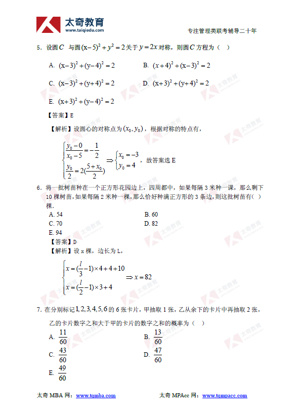 2019年MBA/MPAcc管理類聯(lián)考數學真題及答案(2)