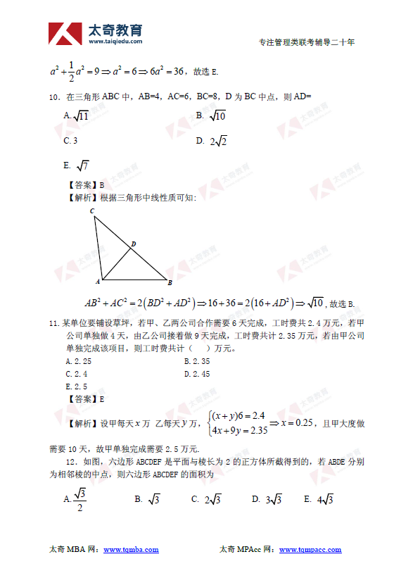 2019年MBA/MPAcc管理類聯(lián)考數(shù)學真題及答案(4)