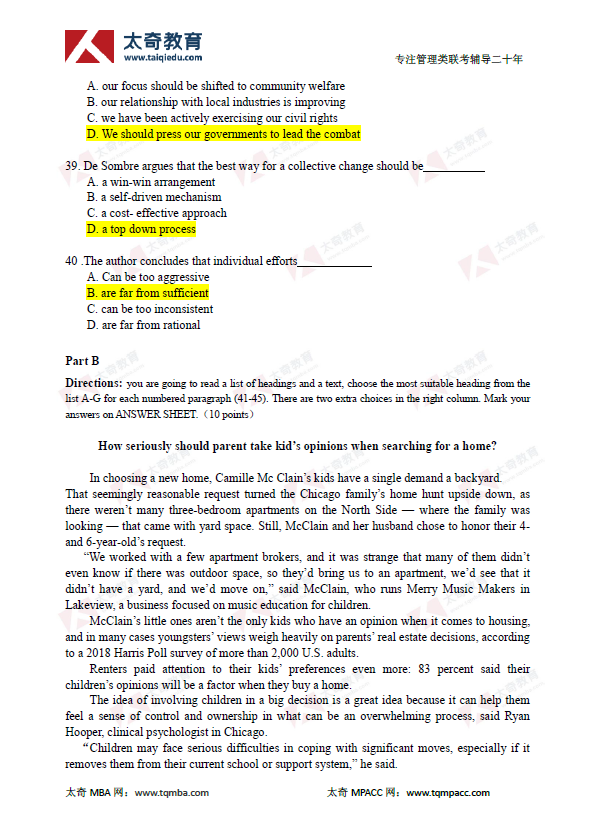 2019年管理類聯(lián)考MBA英語(yǔ)二真題及參考答案(8)