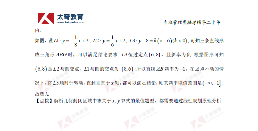 2019年管理類聯(lián)考數(shù)學(xué)真題+解析(太奇官方版)(10)