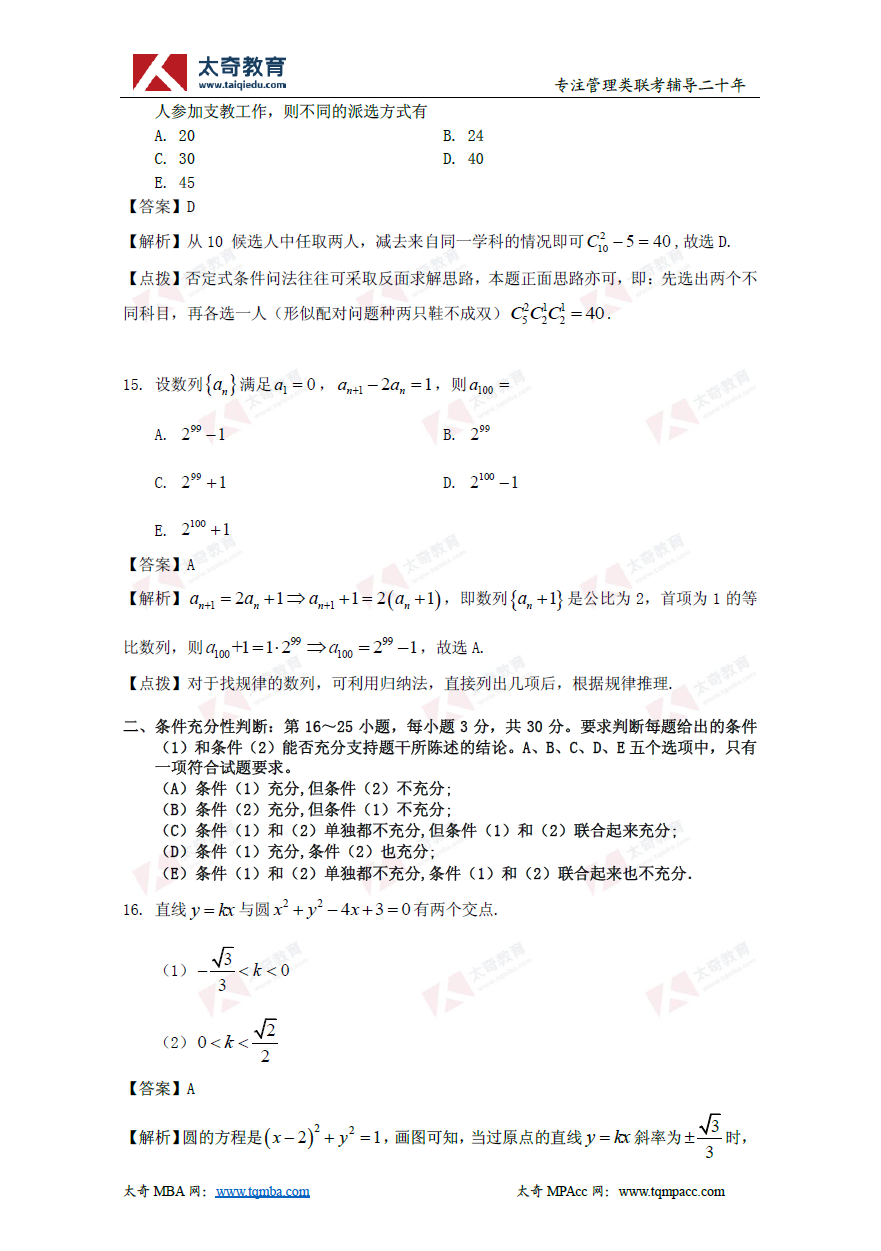 2019年管理類聯(lián)考數(shù)學(xué)真題+解析(太奇官方版)(6)