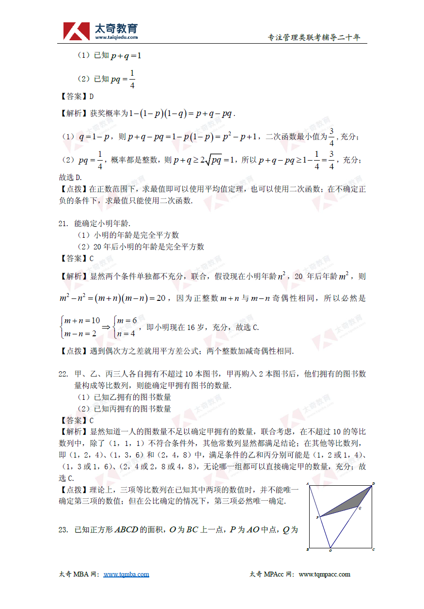 2019年管理類聯(lián)考數(shù)學(xué)真題+解析(太奇官方版)(8)
