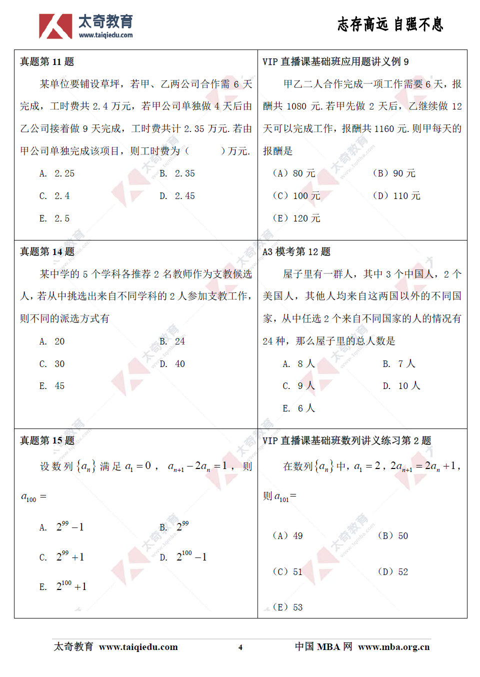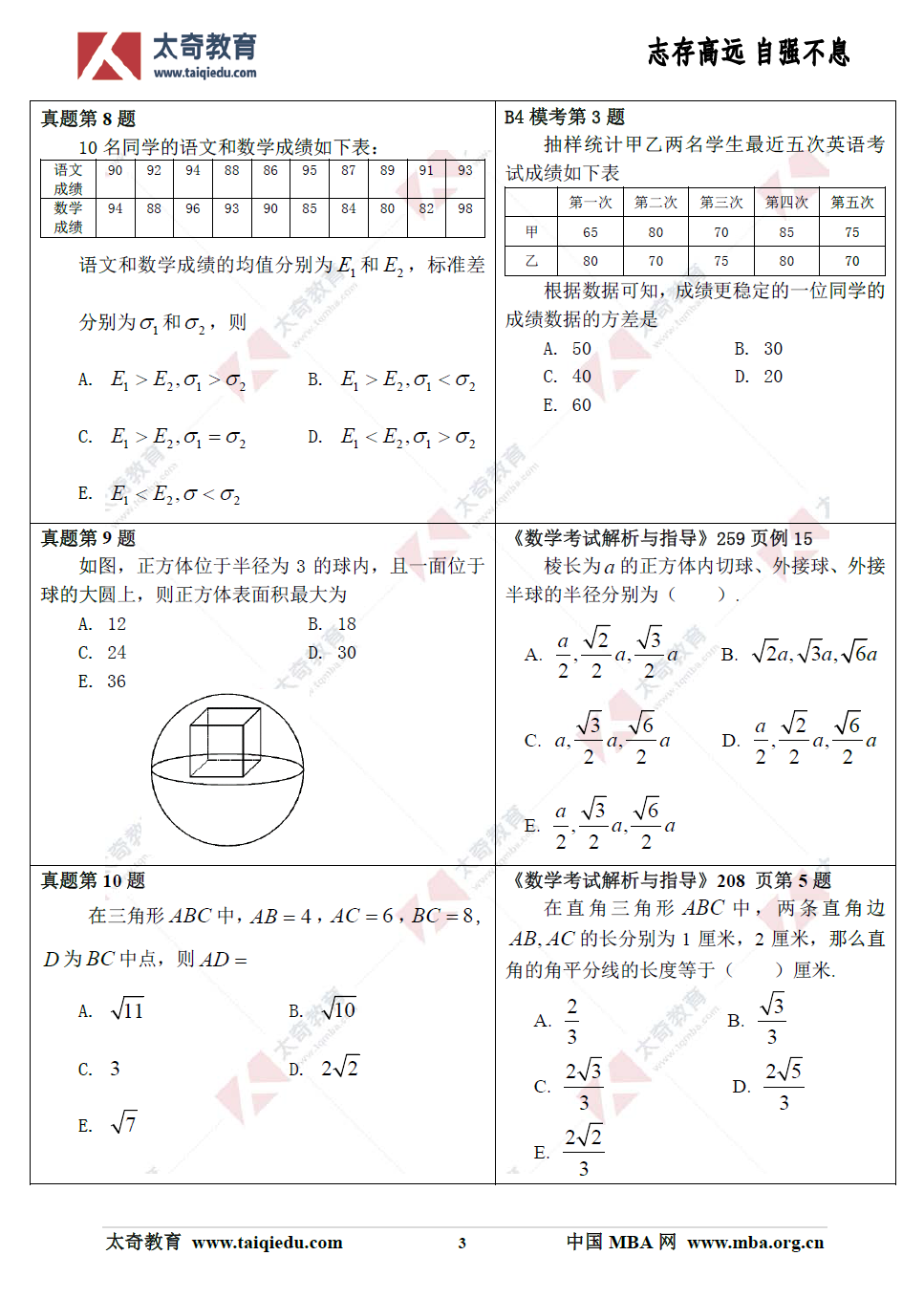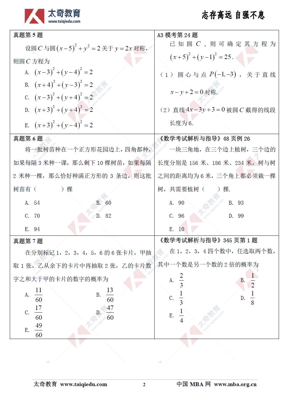 在2019年管理類聯(lián)考中,綜合數(shù)學考試部分直接命中57分,其他考題均屬間接命中,附《太奇2019年管理類聯(lián)考數(shù)學真題命中對照》!再次證明:太奇應對數(shù)學新大綱改革決策的正確性!比命中考題更為重要的是:太奇在對每次??嫉闹R點、考點,尤其在對命題方向的把握上極其精準。