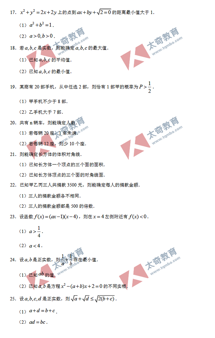 2020年MBA/MEM管理類聯(lián)考數(shù)學(xué)真題(4)