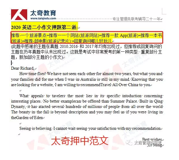 喜賀太奇2020管理類聯(lián)考英語大小作文全部命中