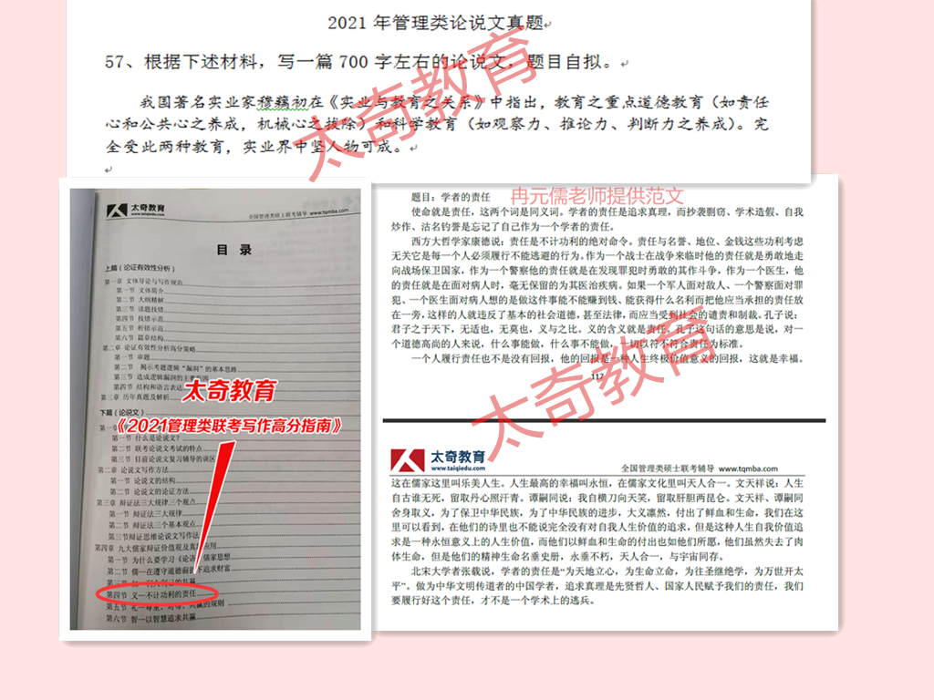 太奇2021年MBA管理類聯(lián)考寫作真題命中對照