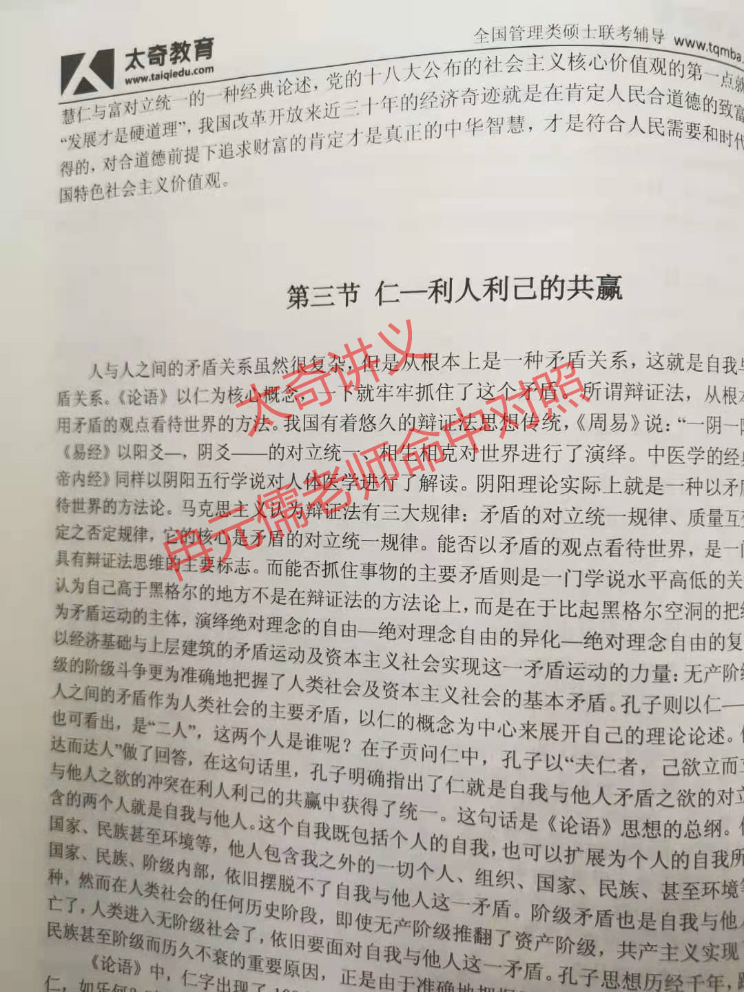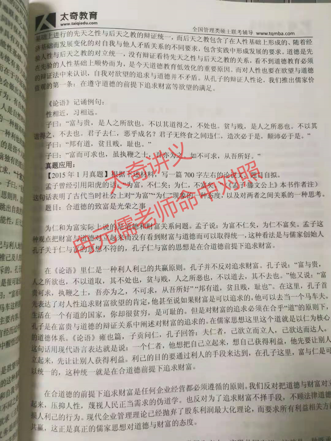 冉元儒: 太奇教育集團(tuán)董事長,北京大學(xué)博士,儒學(xué)研究專家,太奇寫作輔導(dǎo)老師,采取辯證框架教學(xué)法,以辯證思維與中華智慧相結(jié)合,以企業(yè)經(jīng)營者的高度幫助提高考生管理思維能力和對中華智慧的了解,高屋建瓴的掌握聯(lián)考寫作要求,快速寫出聯(lián)考高分論說文。 |
