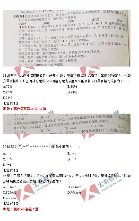 太奇2021年MBA管理類聯(lián)考數(shù)學(xué)真題命中對照(6)