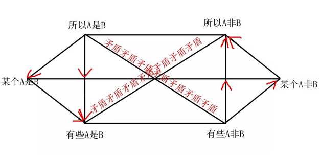 ?、偎蠥是B ②所有A不是B ③某個A是B ④某個A不是B ⑤有些A是B ⑥有些A不是B