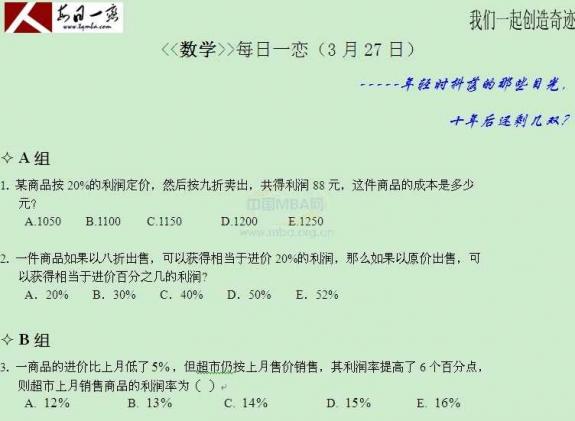 【太奇MBA 2014年3月27日】 MBA數(shù)學(xué)每日一練