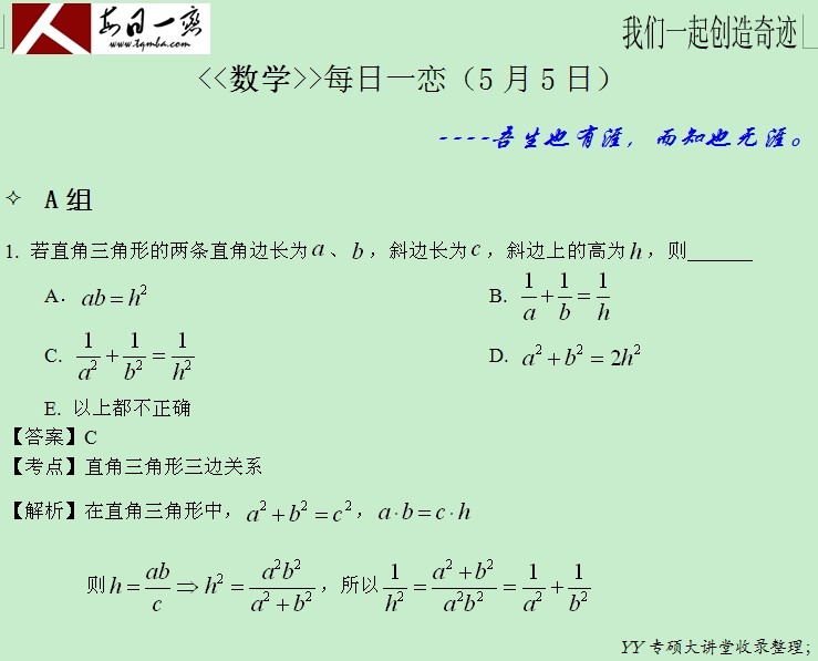 【太奇MBA 2014年5月5日】 MBA數(shù)學(xué)每日一練