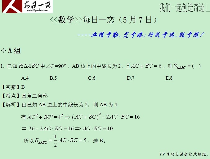 【太奇MBA 2014年5月7日】 MBA數(shù)學(xué)每日一練