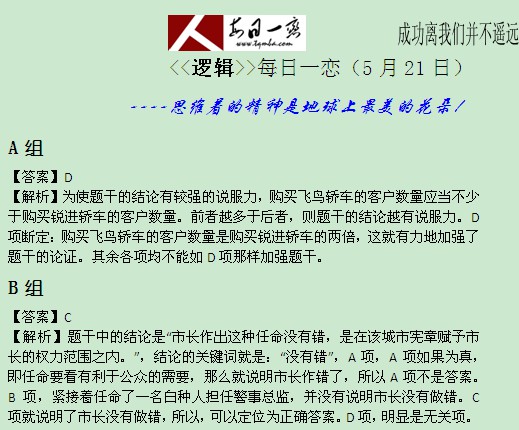 【太奇MBA 2014年5月21】 MBA邏輯每日一練
