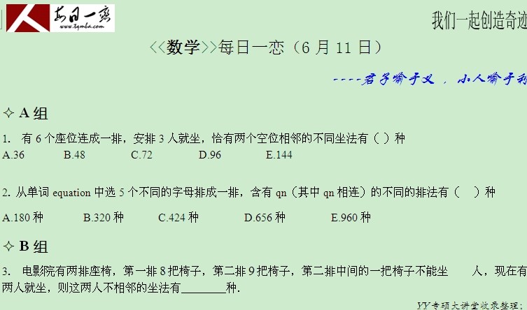 【太奇MBA 2014年6月10日】 MBA數(shù)學每日一練