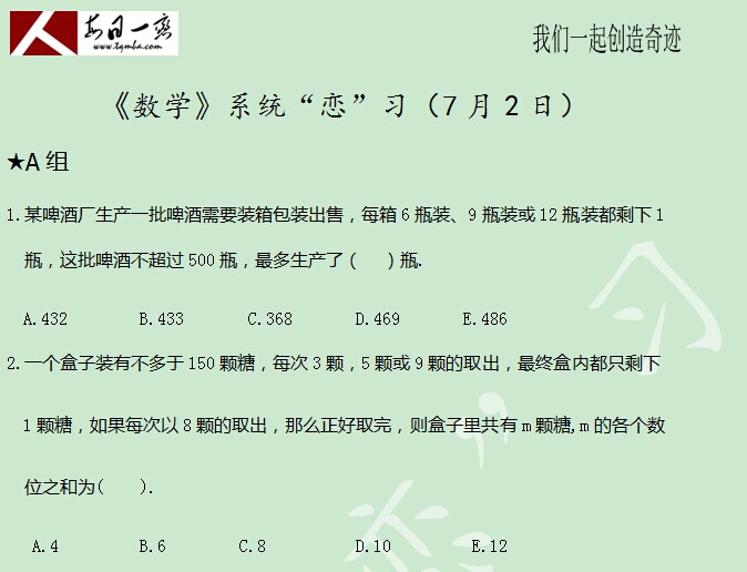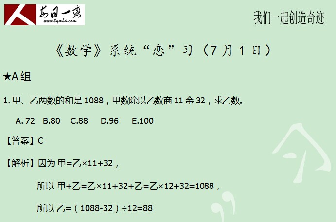【太奇MBA 2014年7月2日】 MBA數(shù)學(xué)每日一練