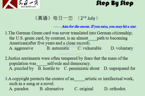 【太奇MBA 2015年7月2日】MBA英語(yǔ)每日一練