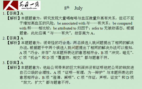 【太奇MBA 2015年7月9日】MBA英語每日一練