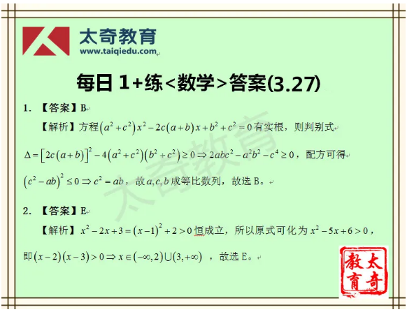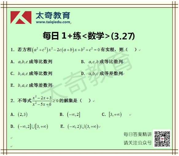 太奇MBA管理類聯(lián)考數(shù)學(xué)每日一練 3-27