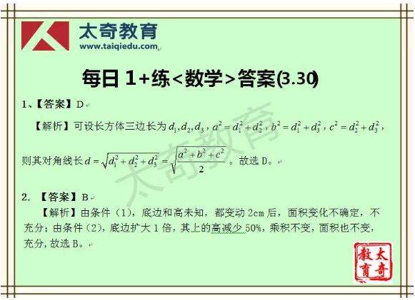 太奇MBA管理類聯(lián)考數(shù)學(xué)每日一練 3-30