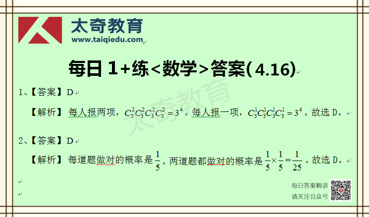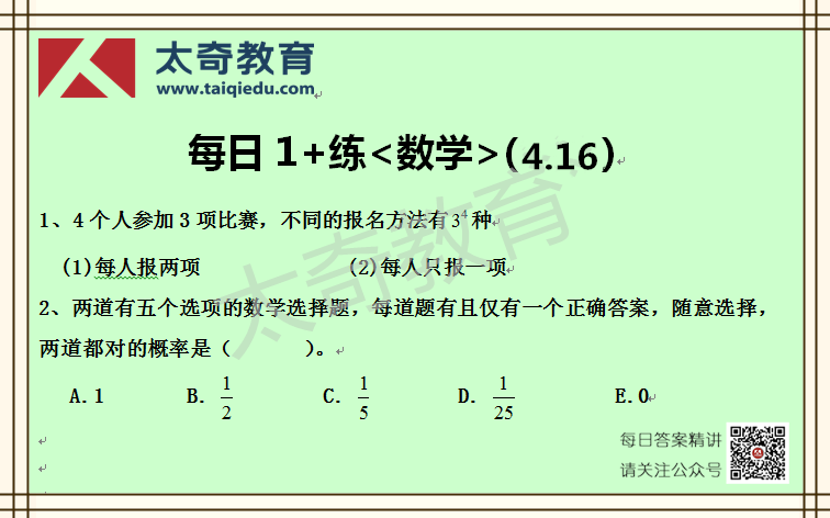 太奇MBA管理類聯(lián)考數(shù)學(xué)每日一練 4-16