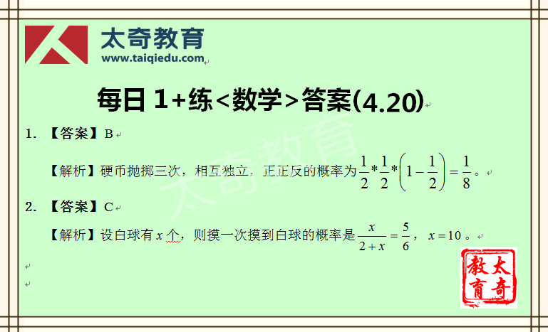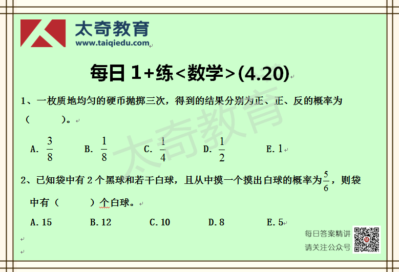 太奇MBA管理類聯(lián)考數(shù)學(xué)每日一練 4-20