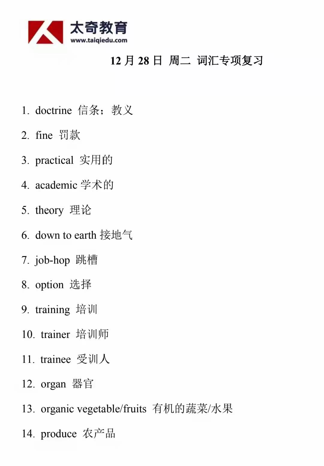 12月28日詞匯專項(xiàng)復(fù)習(xí)