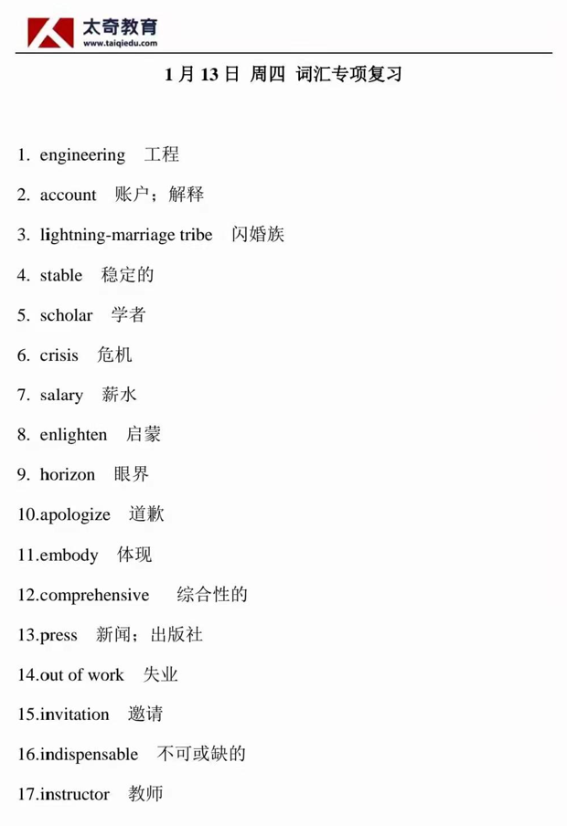 1月13日詞匯專項(xiàng)復(fù)習(xí)