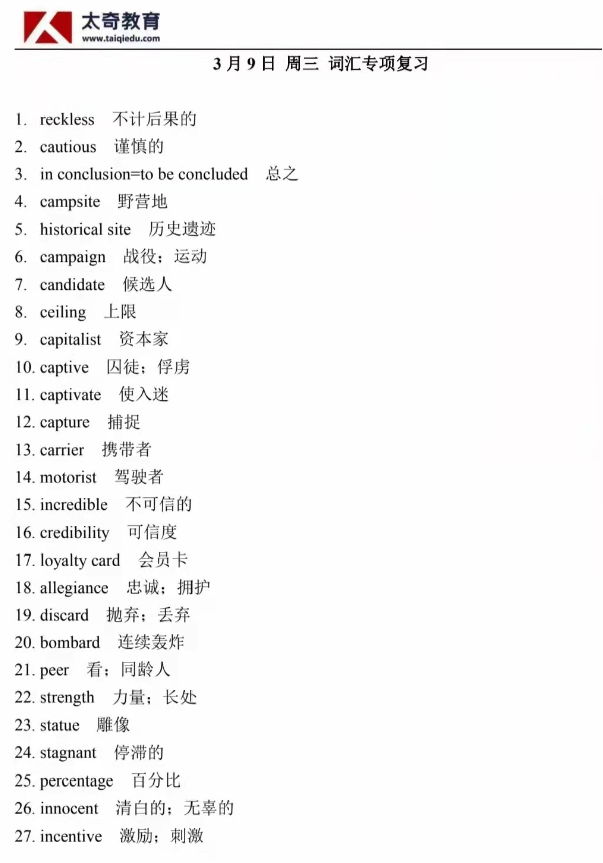 3月9日詞匯專項練習