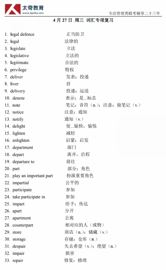4月27日詞匯專項練習