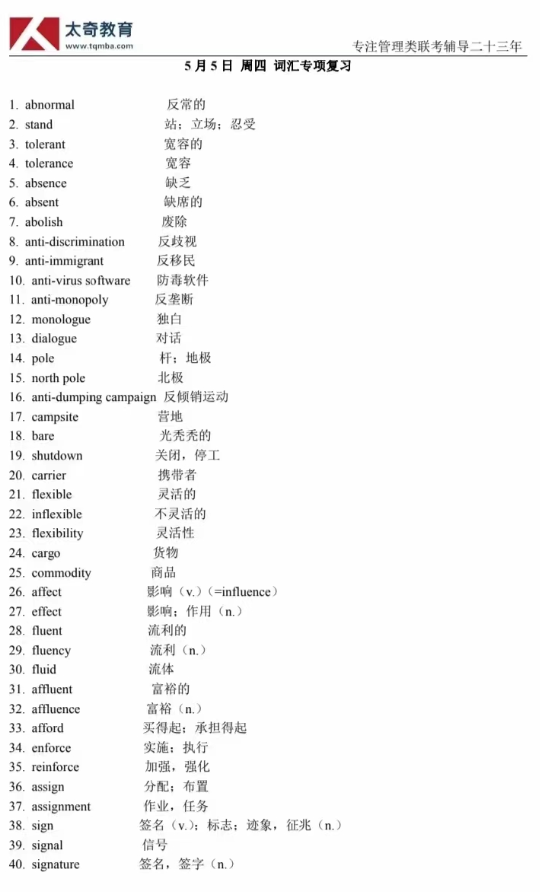 5月5日詞匯專項(xiàng)練習(xí)